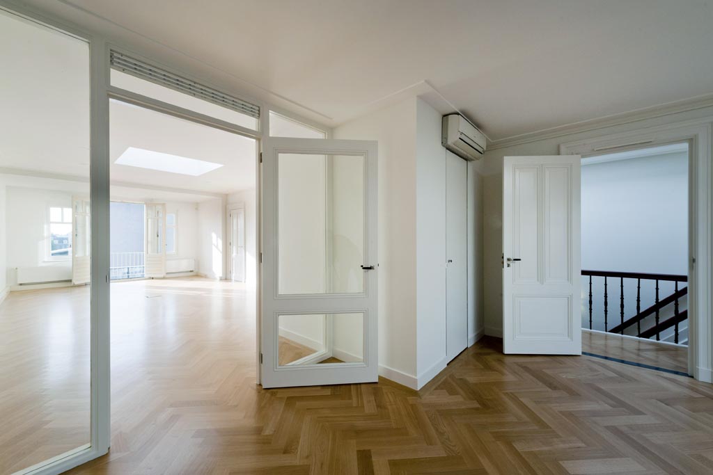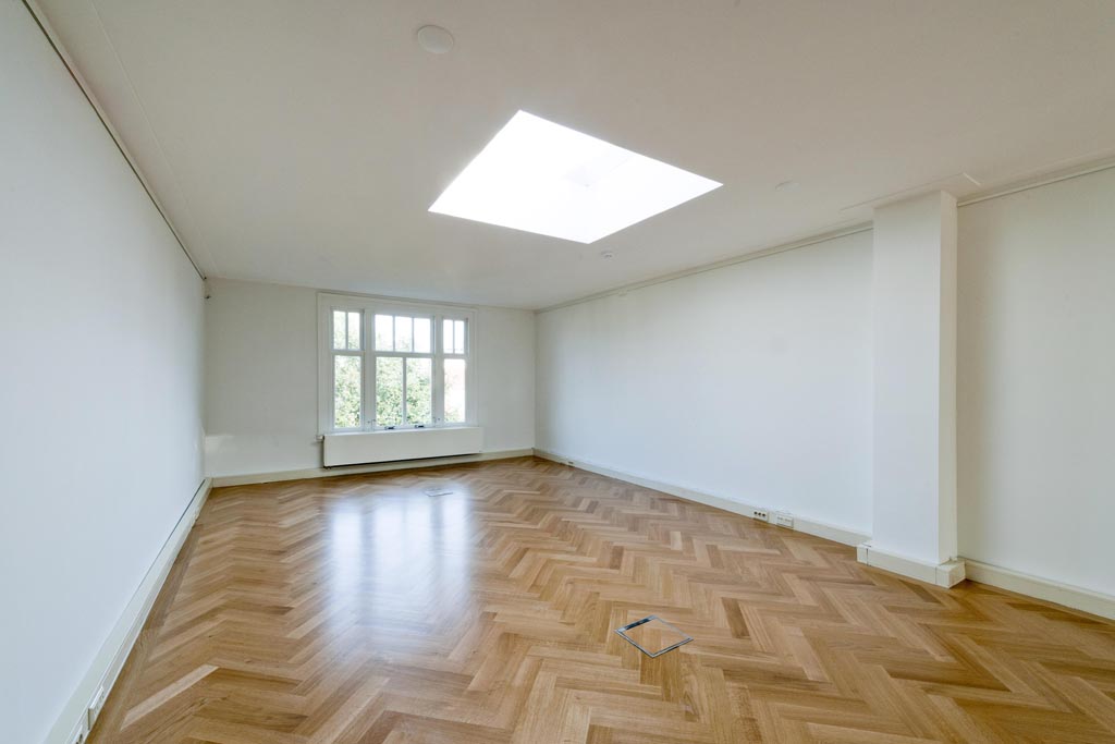 De kantoorruimte beschikt over een riante ontvangsthal. Het mooie trapportaal leidt naar de verschillende verdiepingen (per lift). De grote werkkamers zijn voorzien van visgraat houten vloeren, airconditioning en hebben mooie uitzichten over het Museumplein alsmede de royale tuin.